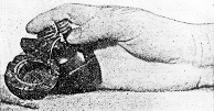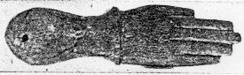 Or une bonne partie des castagnettes coptes épouse cette forme, tout en la soulignant encore davantage. Ce n'est plus une courbe plus ou moin égale, mais un angle droit qui fait ressembler l'instrument a un bras humain tenu perpendiculairement au corps, ou au signe. Cette ressemblance est surtout visible pour les instruments plus longs que larges. L' «avant-bras» étant quelquefois un peu court, on peut comparer ces instruments aussi à la forme d'un « soulier», comparaison adoptée par C. Sachs qui, le premier, a décrit plusieurs castagnettes coptes dans son ouvrage «Die Musik-instrumente des alten Agyptens». A notre interprétation de voir des bras humains dans ces instruments on pourrait objecter que les mains ne sont pas représentées et que l'on voit seulement l'angle droit formé par l'épaule, le bras et l'avant-bras. L'explication serait que la partie qui aurait dû être sculptée en forme de main reste invisible. La plupart des instruments complets et en bon état de conservation sont percés de ce côté. C'est donc à cet endroit qu'on liait les deux castagnettes. D'après les représentations, il semble évident que le joueur tenait l'instrument par cette extrémité. Ainsi le mouvement de l'entrechoc se produisait à l'autre bout, auprès de la partie épaisse et creuse à l'intérieur, comparable aux « épaules» (pour continuer notre image). Devenue invisible, cette partie de l'instrument n'était donc pas décorée.