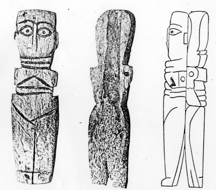 Ce fait organologique nous a semblé d'ailleurs assez important pour l'englober dans notre premier essai d'une classification des planchettes entrechoquées. Nous devons voir dans ces instruments des « planchettes de différentes formes, creusées à l'intérieur», les précurseurs des castagnettes véritables, d'ailleurs employés de la même manière que les castagnettes coptes et Grecques. Quant à leur forme, notre attention est surtout retenue par les planchettes courbées. Déjà la civilisation badarienne a connu de ces objets fortement courbés se distinguant du boomerang par l'angle très prononcé de leur manche. Au cours de l'histoire égyptienne, la plupart des planchettes entrechoquées courbées ont gardé cette forme. Ce sont des demi-cercles quand il s'agit d'instruments sculptés en ivoire d'hippopotame, mais l'angle est bien plus caractéristique pour les instruments en bois (Cat. gén. no 69220 a et b, 69454 a et b).